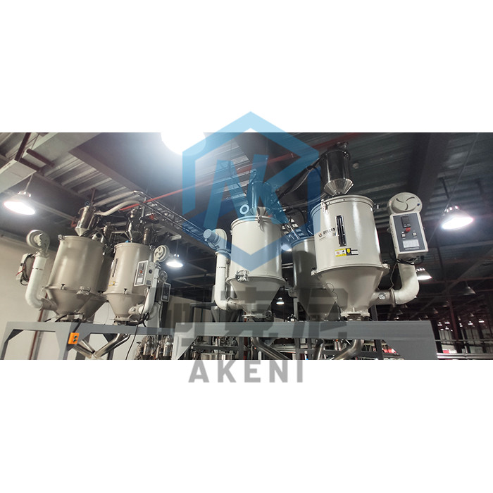 集中供料系統是指通過設計,整合將各種加工設備及生產設備連接起來,在中·央計算機統一管理下,協調工作,實現對物料的集中干燥,自動配比混合,一對多點遠程定量輸送,并對輸送管路的切換、清理,實現自動化處理。